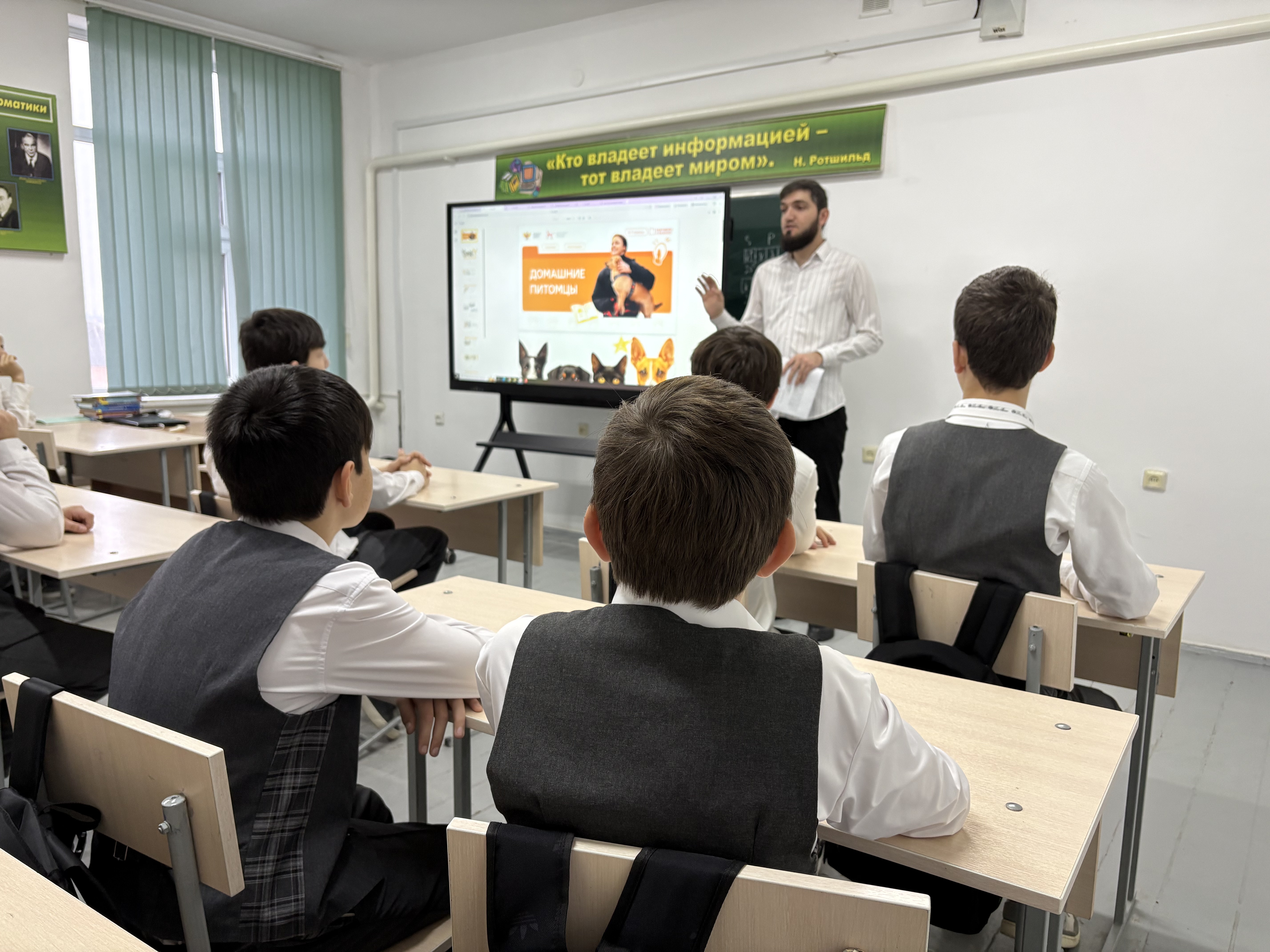 Учебная неделя второго триместра в МБОУ «СОШ №1 с. Бердыкель» началась с церемонии поднятия флагов Российской Федерации и Чеченской Республики. Прошло и внеурочное занятие «Разговоры о важном» на тему «Домашние питомцы».