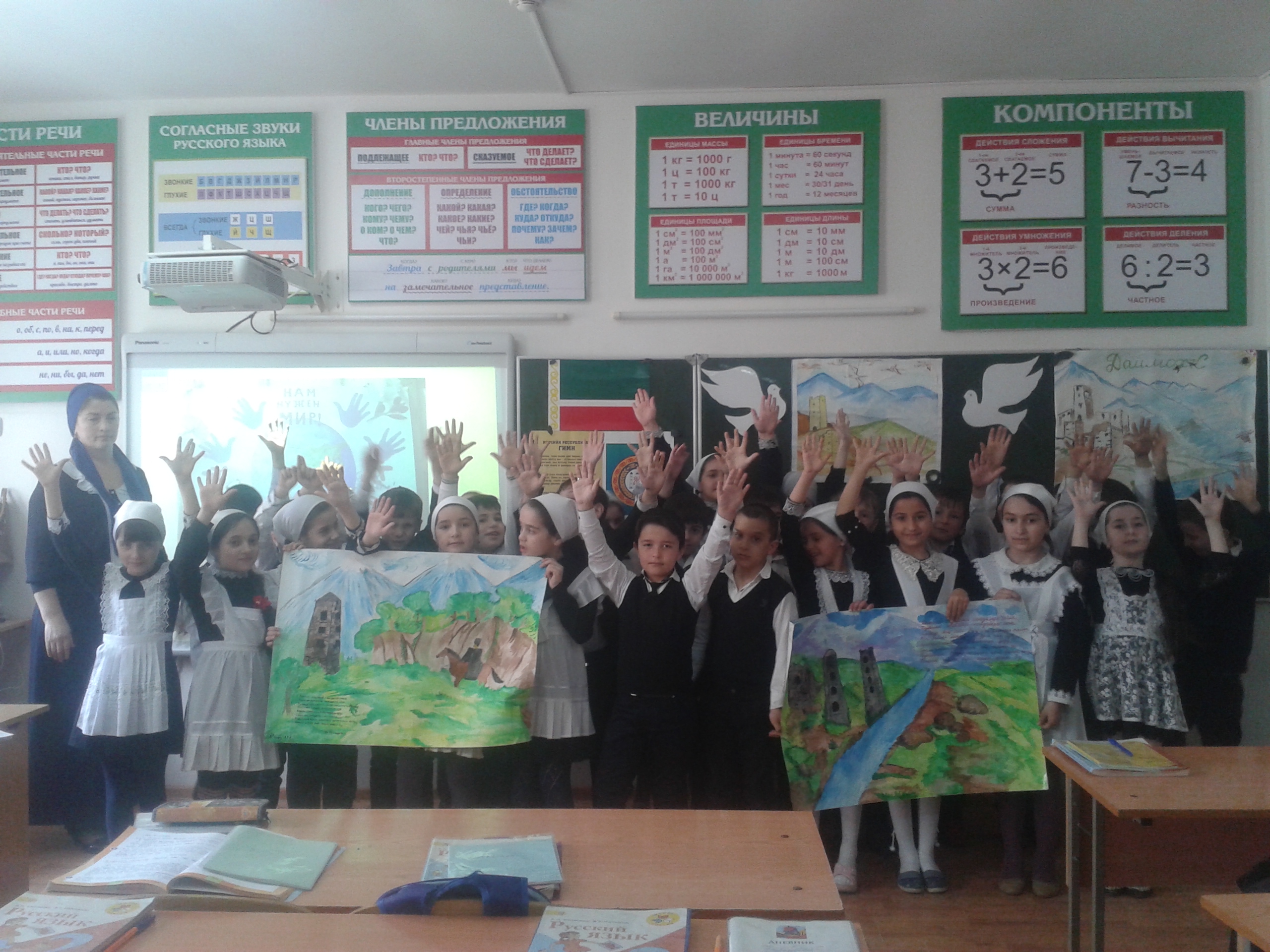 15.04.2015В МБОУ «СОШ №3 с.Автуры» 15 апреля 2015 г. состоялся утренник «Пусть в Чечне всегда будет мир». Утренник проходил в классном помещении. В классе царила атмосфера мира. Доска была украшена голубями мира, также висели рисунки учащихся. В классе царила атмосфера настоящего праздника, праздника мира.