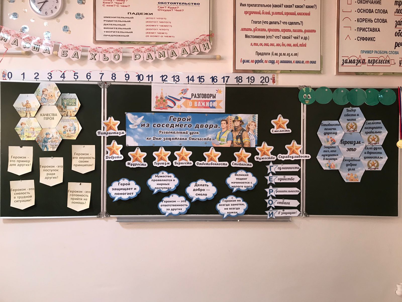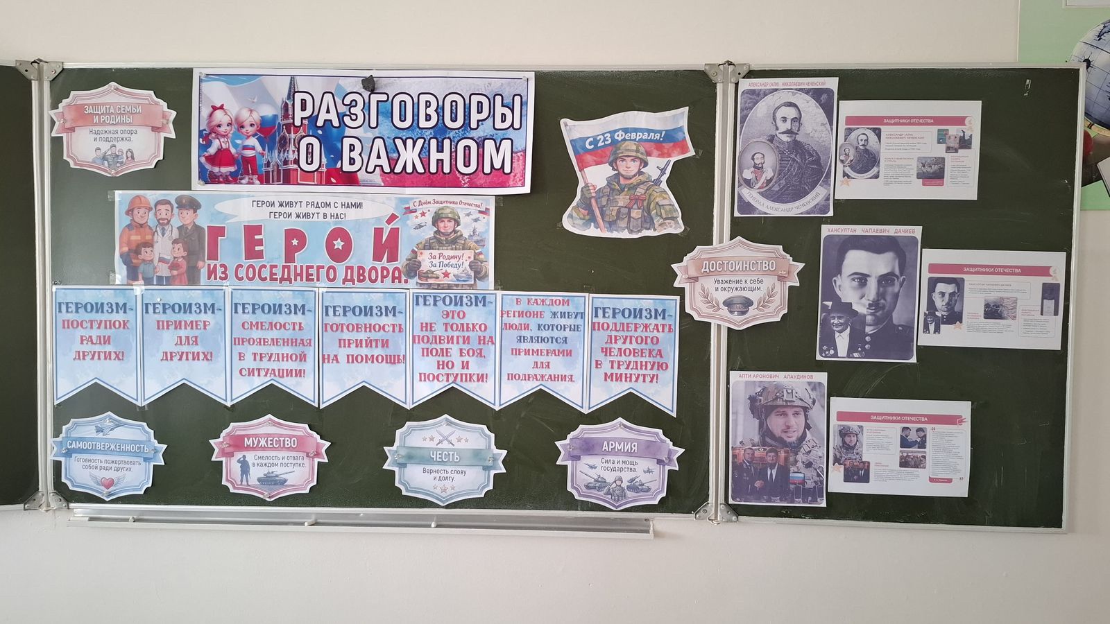 Сегодня в школе говорили о важном: о людях, чьи поступки достойны глубокого уважения. О героях из соседнего двора — наших земляках, защитниках и тружениках.