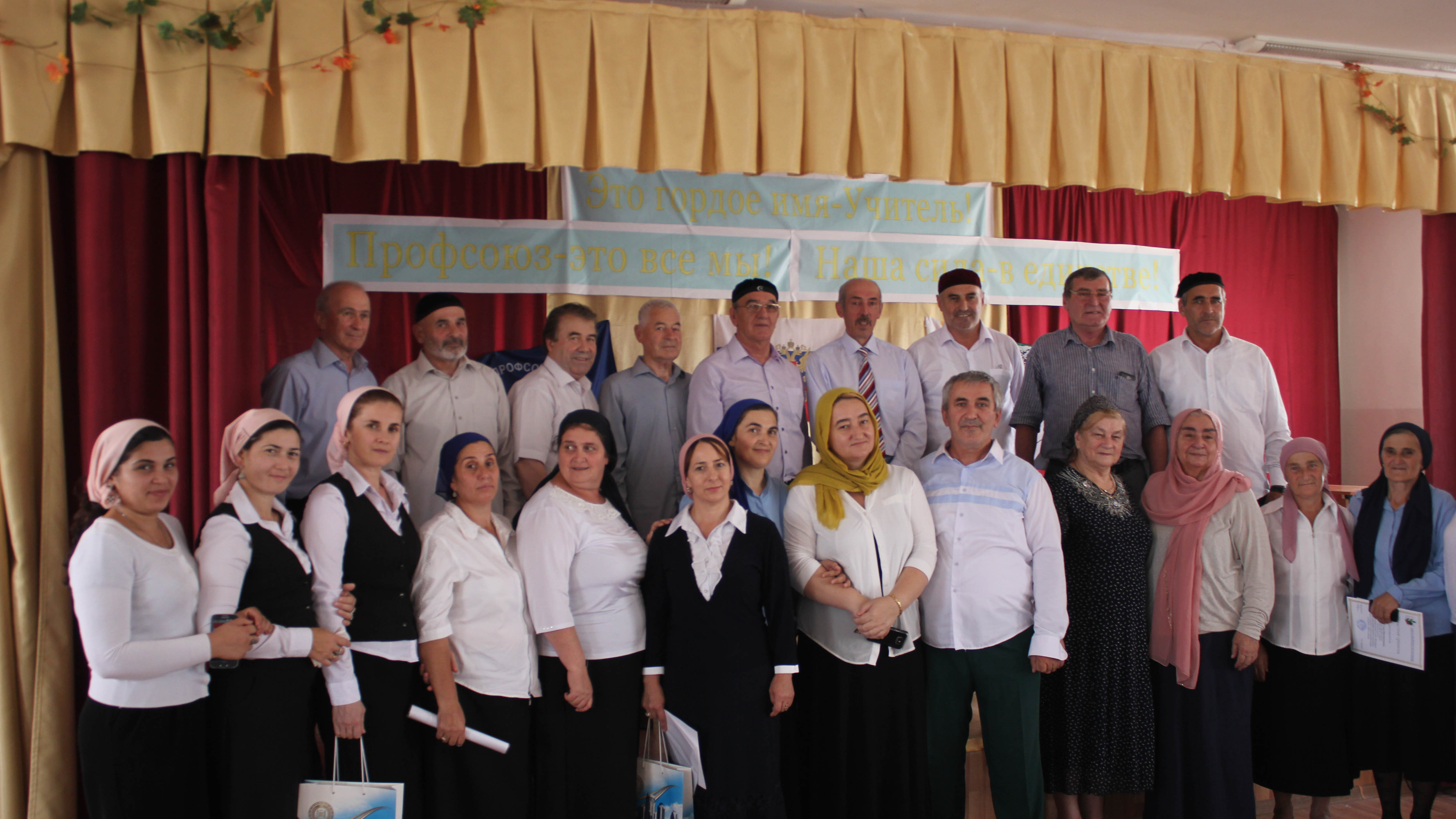 После выступления ИсрапиловА.В вручил грамоты адм.с.Автуры за добросовестный и многолетный труд в воспитании подрастающего поколения и активное участия в жизни села: Хамидову М.Х-М Зухайраеву А-П.М , Абдулхаджиевой А.С. Амалиевой З.И, Дагалаевой Х.С-Х, Абазаеву Х-А А, Исрапилову З.В , Исраиловой А.Х, Баскуевой З.Х.Профсоюзные билеты и памятные подарки новым работникам школ вручала Бислиева Е.М-ветеран профсоюза, первая женщина-учитель, женщина-директор школы с.Автуры.