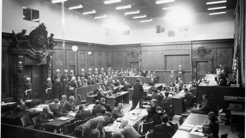 Нюрнбергский процесс — международный судебный процесс над группой главных нацистских военных преступников, который начался 20 ноября 1945 года. Он проходил в Международном военном трибунале в Нюрнберге (Германия) и продолжался до 1 октября 1946 года. Суду были преданы высшие государственные и военные деятели фашистской Германии: Геринг, Гесс, фон Риббентроп, Кейтель, Розенберг, Борман и другие. Всем им было предъявлено обвинение в совершении тягчайших военных преступлений и в составлении и осуществлении заговора против мира и человечности — убийство военнопленных и гражданского населения, жестокое обращение с ними, разграбление собственности, установление системы рабского труда. Также ставился вопрос о признании преступными таких организаций фашистской Германии, как руководящий состав Национал-социалистской партии, штурмовые (СА) и охранные отряды (СС), служба безопасности (СД), государственная тайная полиция (гестапо), правительственный кабинет и генштаб. В ходе процесса состоялось 403 открытых судебных заседания, рассмотрены многочисленные показания и документальные доказательства. Для координации действий по расследованию и поддержанию обвинения был образован Комитет из главных обвинителей: от СССР — Руденко, от США — Джэксон, от Великобритании — Шоукросс и от Франции — де Ментон. Председателем суда был представитель Великобритании Д.Лоуренс. 30 сентября – 1 октября 1946 года был оглашен приговор. Все подсудимые, кроме троих, были признаны виновными в предъявленных обвинениях и приговорены: часть — к смертной казни через повешение, другие — к пожизненному заключению. Лишь единицы получили сроки от 10 до 20 лет тюрьмы. Трибунал признал преступными организациями СС, гестапо, СД и руководящий состав нацистской партии. Ходатайства осужденных о помиловании были отклонены Контрольным советом, и в ночь на 16 октября 1946 года приговор о смертной казни был приведён в исполнение. Суды над военными преступниками меньшей величины продолжались в Нюрнберге вплоть до 1950-х годов, но уже в американском суде. Нюрнбергский процесс — первый в истории международный суд, признавший агрессию тягчайшим уголовным преступлением, наказавший как уголовных преступников государственных деятелей, виновных в подготовке, развязывании и ведении агрессивных войн, истреблении миллионов невинных людей.